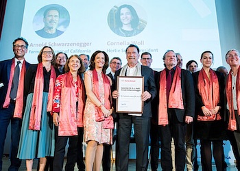 Bodybuilder, politischer Innovator und Umweltaktivist – Arnold Schwarzenegger, ehemaliger Gouverneur von Kalifornien und engagierter Verfechter des Klimaschutzes, erhielt für seine Verdienste im Bereich Governance die Ehrendoktorwürde der Hertie School in Berlin-Mitte.